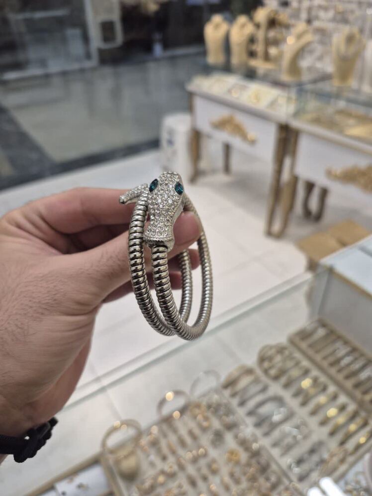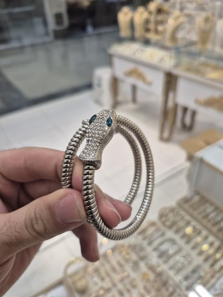 دستبند زنانه طرح مار نگیندار | استیل نقرهای لوکس و خاص