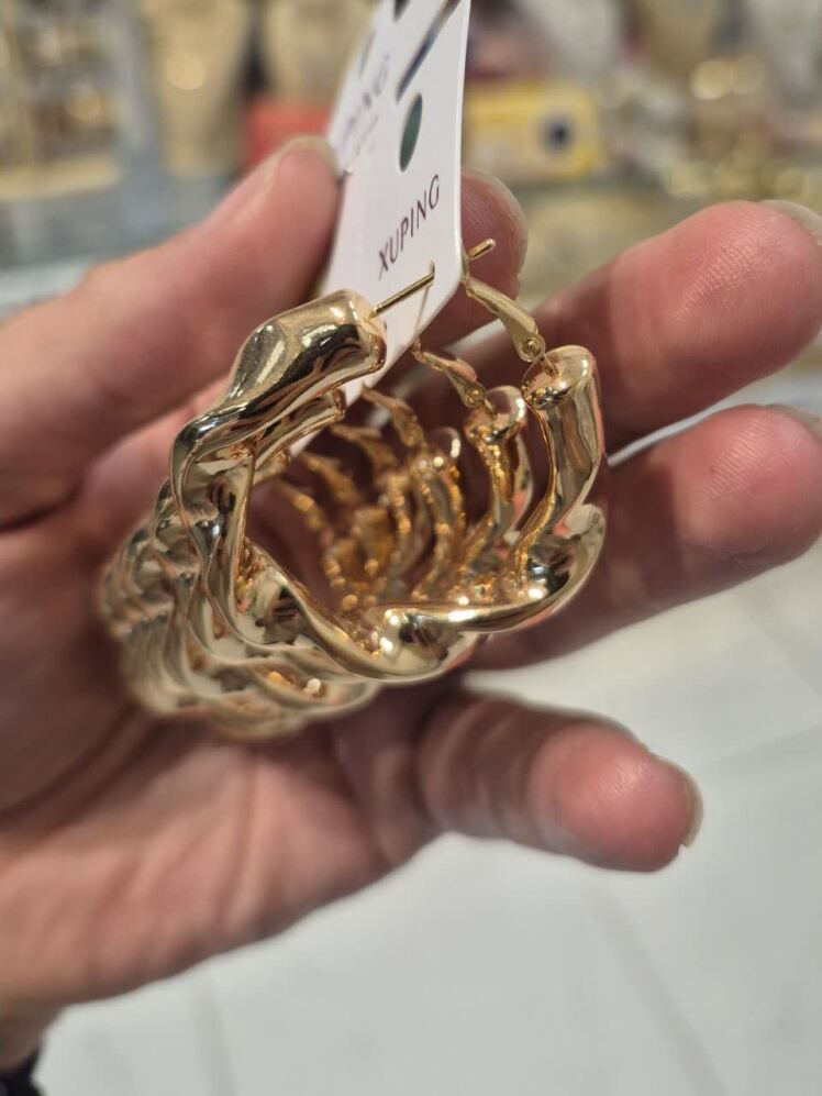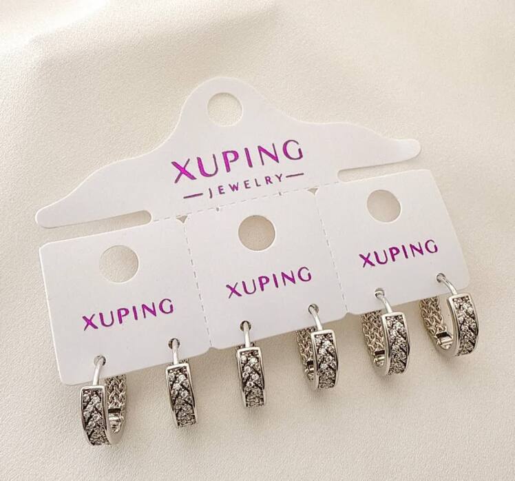 گوشواره حلقهای نقرهای ژوپینگ (XUPING) نگیندار مدل بافت – ظریف و مجلسی