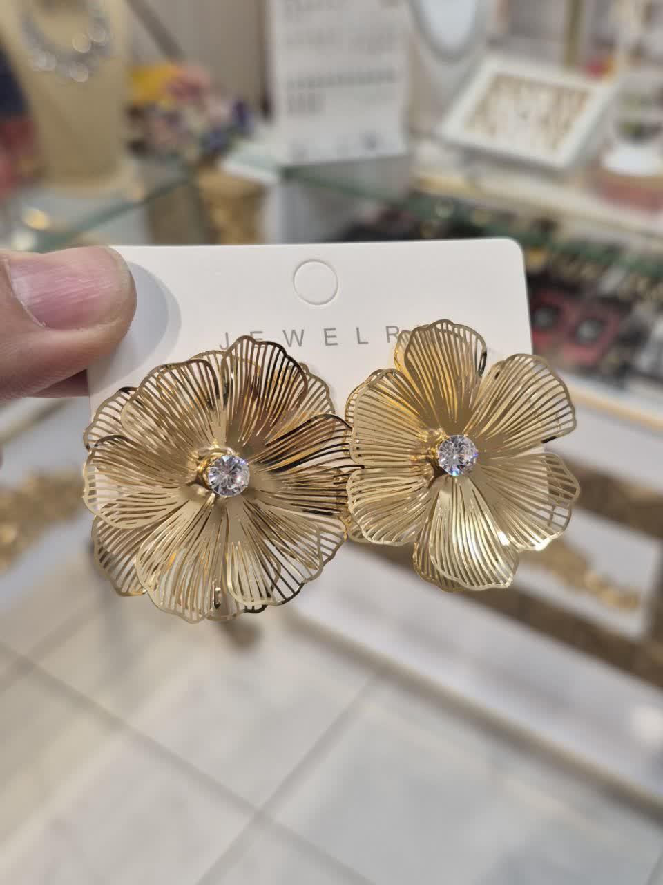 گوشواره گل با نگین پینترستی جدید با کیفیت وارداتی
