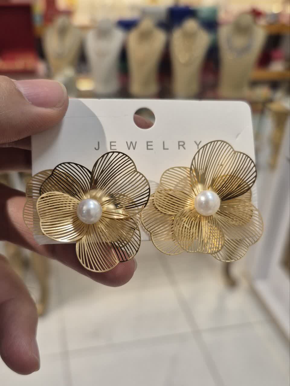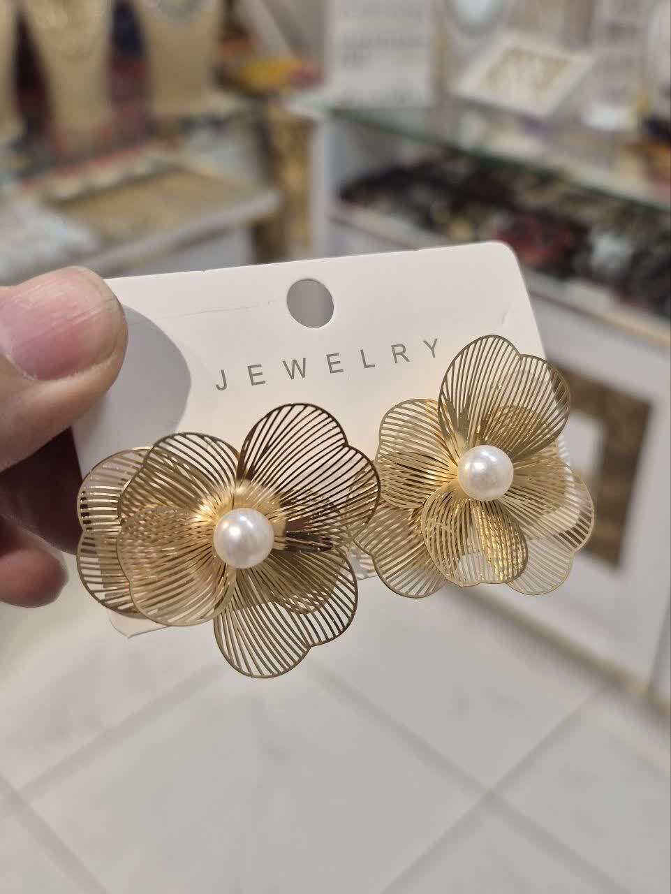 گوشواره گل با مروارید پینترستی جدید با کیفیت وارداتی