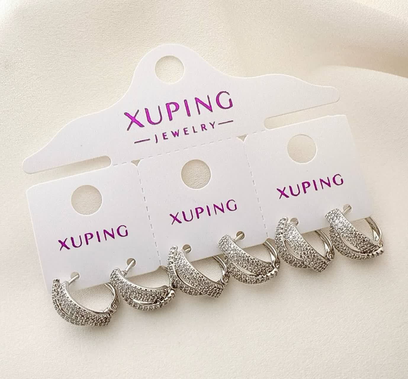 گوشواره حلقه‌ای ژوپینگ نگین‌دار نقره‌ای (Xuping)