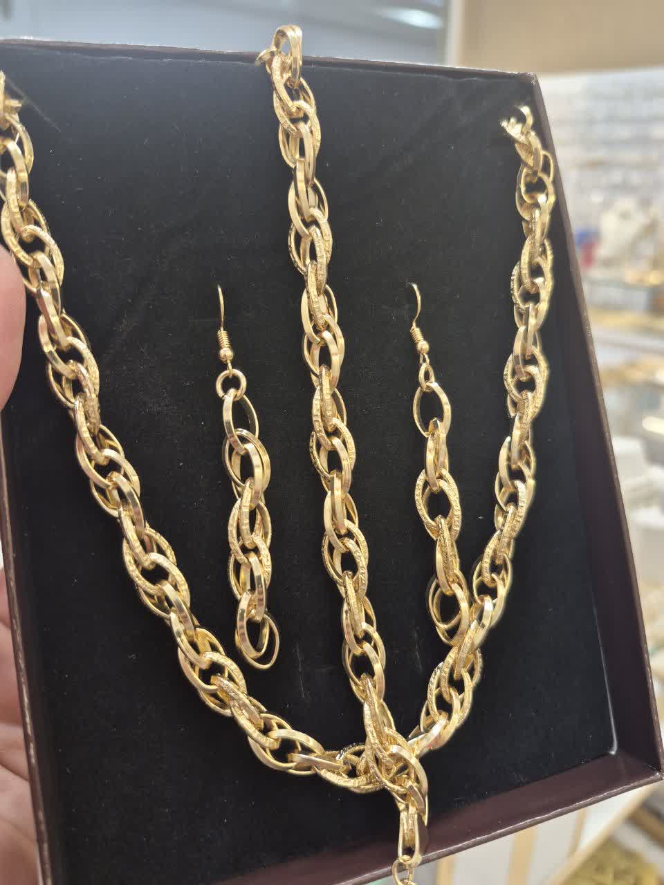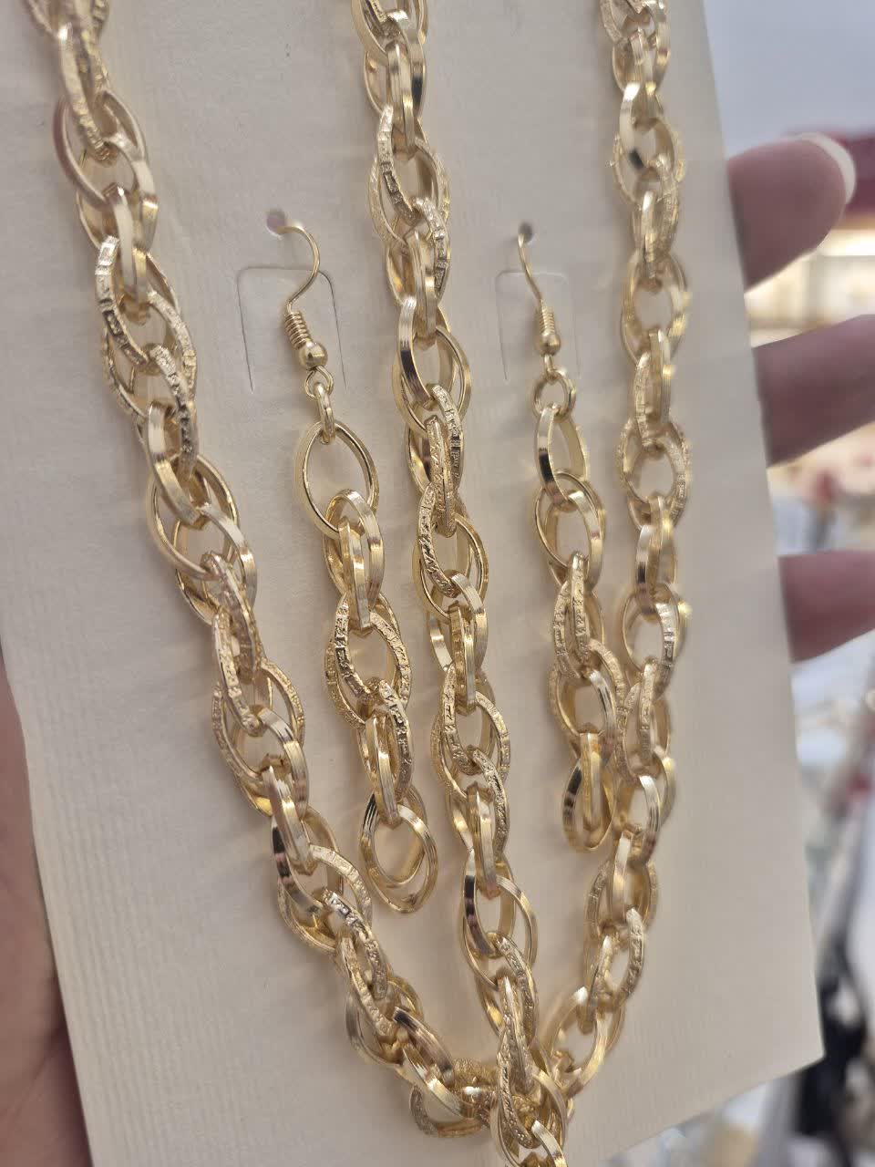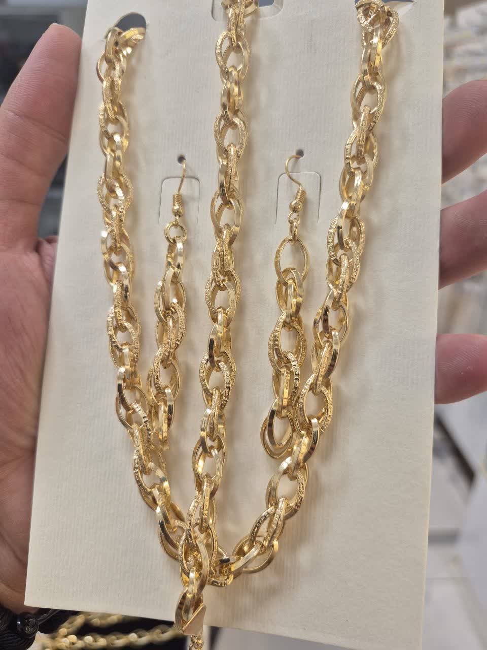 ست بدلیجات زنانه طرح طلا با طراحی زنجیری درشت و بسیار شبیه طلای اصل