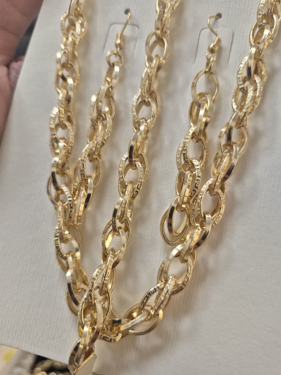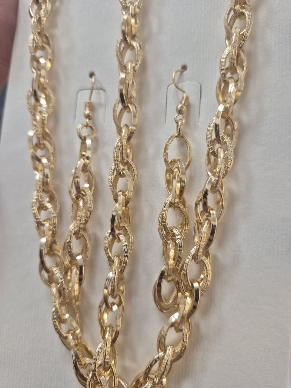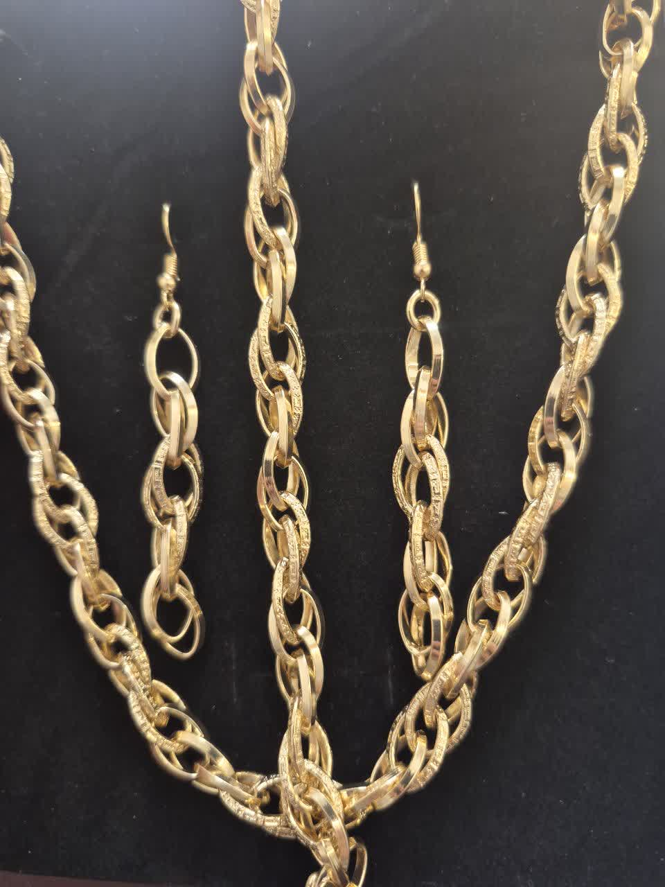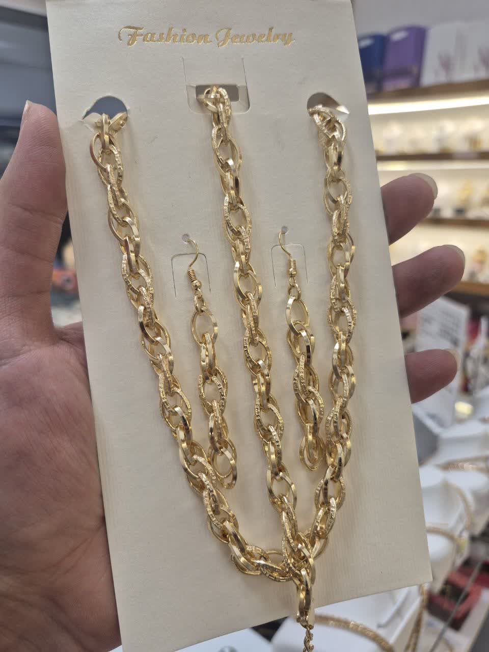 ست بدلیجات زنانه طرح طلا با طراحی زنجیری درشت و بسیار شبیه طلای اصل